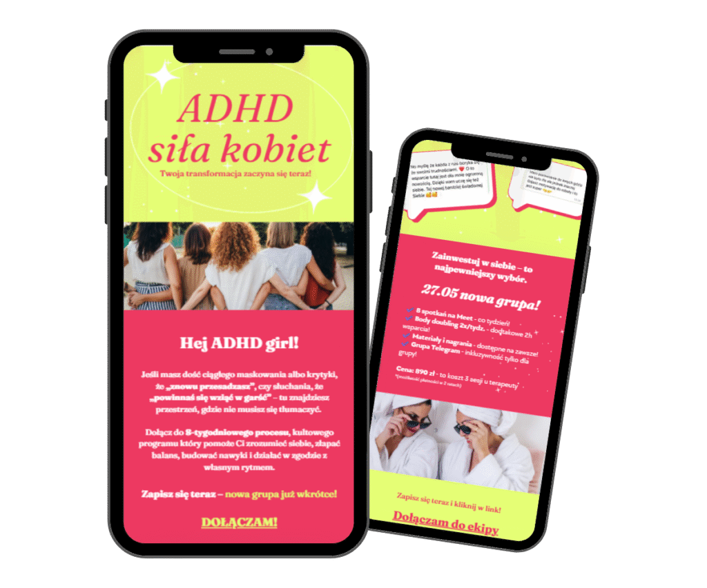 Również mogę podpiąć link, który będzie od razu przekierowywał do formularza, czy do płatności. Mega ułatwienie, no i jest spójne – nie muszę też nikomu mówić jak ma wyglądać, ponieważ Werka zrobiła dla mnie identyfikację, więc landing page jest tylko przedłużeniem mojej oferty 🙂